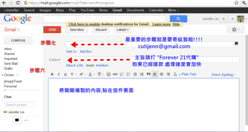 記得 主旨一定要寫 "OOO代購Forever 21,已經匯款" 這樣就會加速處理 馬上幫你下單