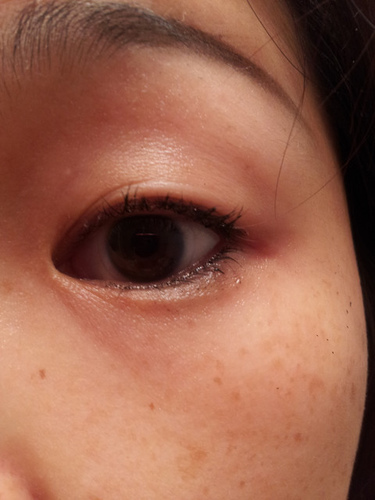 擦一下的效果,一下而已喔! 基本上眼影+大部分的眼線都已經被吸附起來。